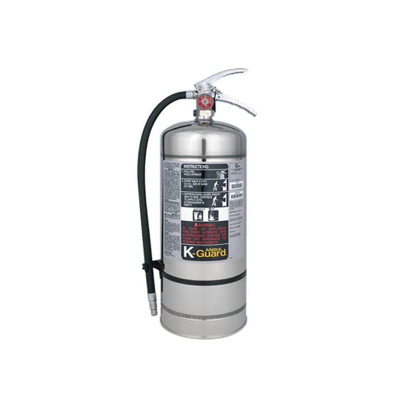 Extintor portátil de agente líquido K-GUARD, para fuegos clase K. -Cilindro fabricado en acero inoxidable, acabado espejo.