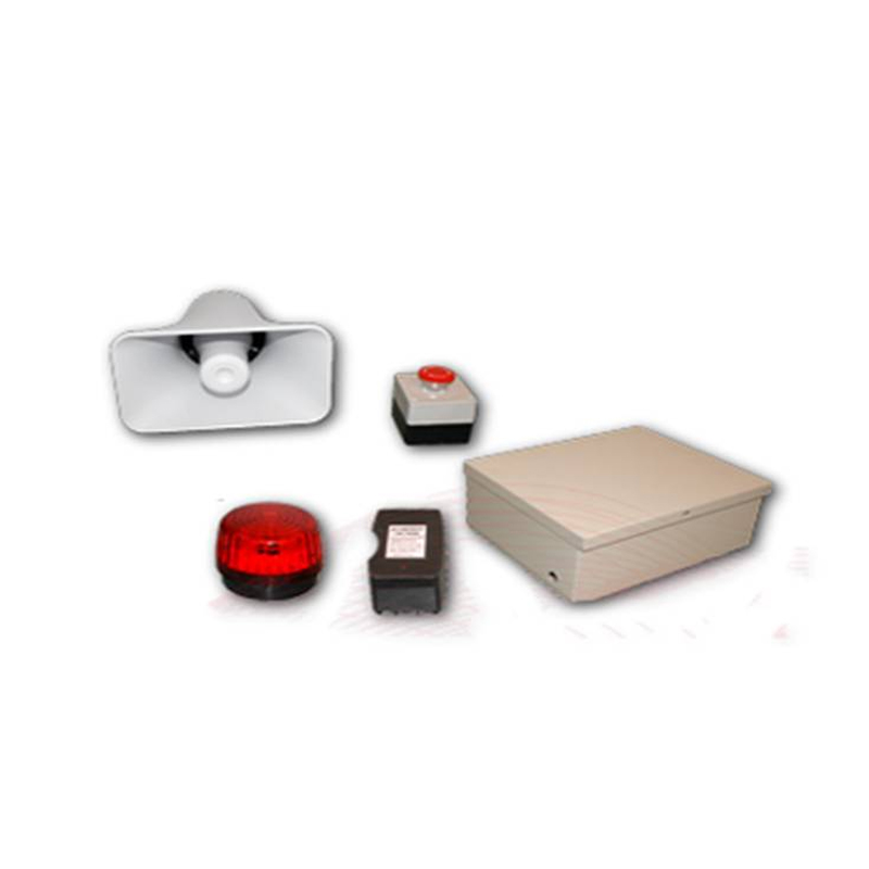 Sistema de alarma para utilizarse en caso de emergencia, mediante activación manual donde al presionar el botón pulsador, se activa de manera inmediata la señal auditiva y luminosa con una intensidad de 75 dB. Tiene la característica de operar con toma de corriente alterna a 120 Volt y con batería de respaldo de larga duración (12 Volt).